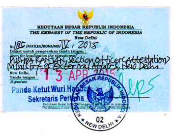 - Attestation from Indonesia Embassy in Nashik ( This final step not required for HCCH Member countries )