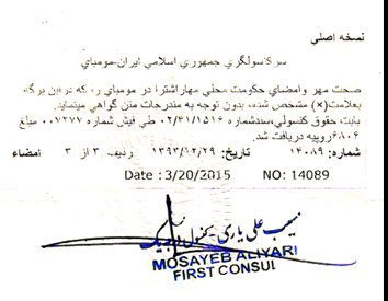 - Certificate of Registration attestation for Iran in Airoli