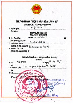 - Attestation from Vietnam Embassy in Mumbai ( This final step not required for HCCH Member countries )